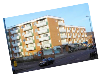 dusche. In dem 4-5 geschossigen Gebäude sind im Erdgeschoss Läden, mit separatem Eingang von der Straße, untergebracht. In den anderen Wohngeschossen befinden sich die einzelnen Appartements, die durch Treppenhäuser und einen Personenaufzug zu erreichen sind.